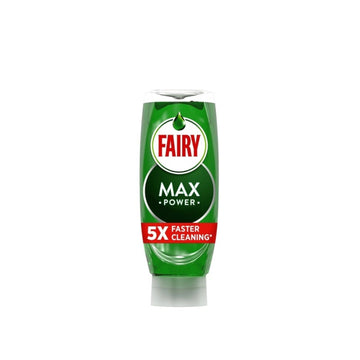 Fairy Max Power 5X Faster Cleaning Liquid is a highly concentrated hand dishwashing detergent engineered for maximum cleaning efficiency. It is designed to save time and effort by quickly dissolving tough grease and food residues, boasting up to five times faster cleaning action than its regular formula. Its innovative packaging includes an upside-down, non-drip bottle with a unique valve, allowing for convenient, mess-free dispensing straight from the bottom, even down to the last drop. The formula creates long-lasting suds and rinses away easily, leaving dishes sparkling clean and infusing the kitchen with an invigorating freshness.