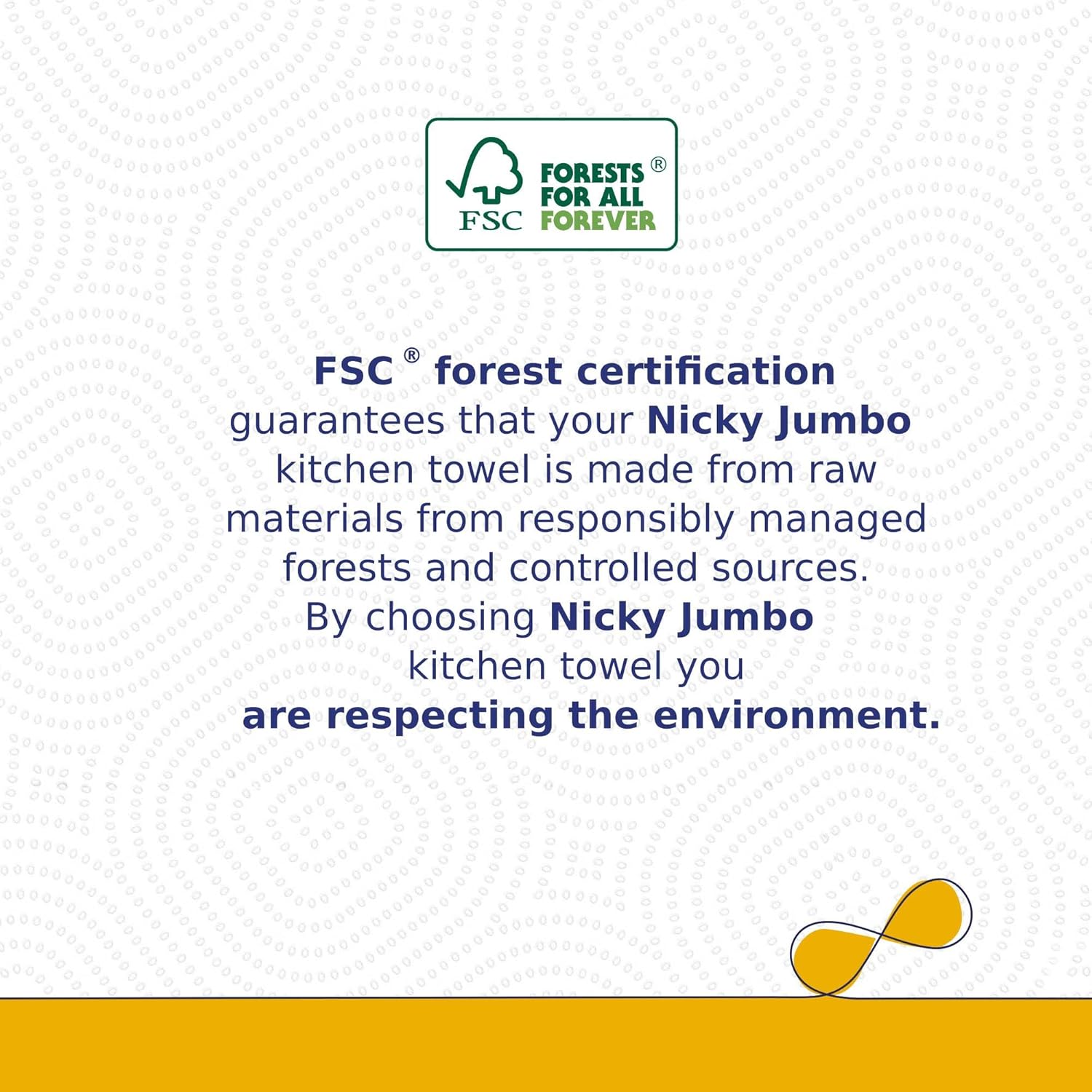 Nicky Jumbo large kitchen roll is a product of Sofidel, an industry leader that promotes to ensure the wellness and hygiene of its customers and the environment.