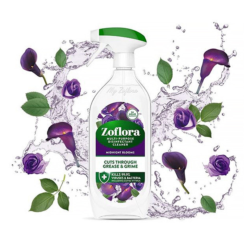 Zoflora Multipurpose Disinfectant Cleaner in the elegant 'Midnight Blooms' fragrance provides a concentrated, hygienic cleaning solution that also doubles as a luxurious air freshener. This 800ml bottle delivers powerful protection by killing 99.9% of common household bacteria and enveloped viruses, ensuring your surfaces are safe and clean. The 'Midnight Blooms' scent is a rich, evocative blend of dark floral notes that linger long after cleaning is finished. Its highly versatile formula can be diluted for cleaning floors and large areas, or used neat to tackle odours and disinfect hard surfaces in your bathroom and kitchen.